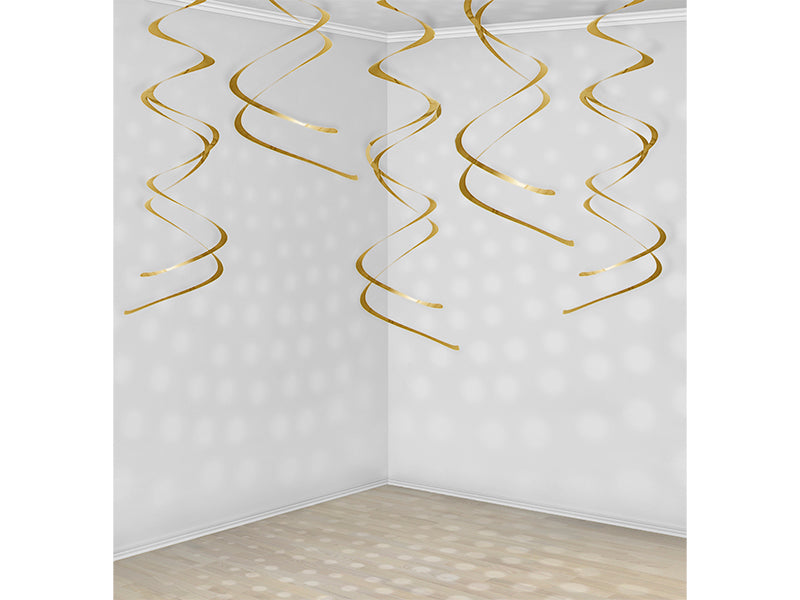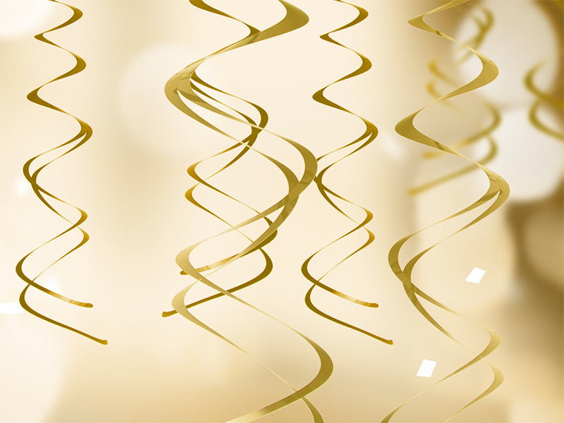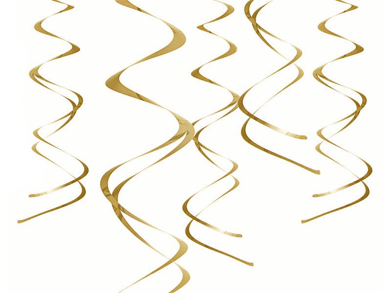 Eine elegante Dekoration für jeden Anlass! Die 5 Gold metallic Spiralhänger werten sowohl edle Geburtstage und Ramadan, als auch 20er Jahre Partys oder Hochzeiten ideal auf. Mit einer Länge von 60cm hängen sie von der Decke und stellen einen hübschen Hingucker dar.