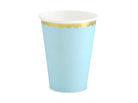 Party im Candyland Style. Damit deine Gäste stilsicher ihre Getränke zu sich nehmen können, gibt es die Candy Party Pappbecher in Pastellblau. Sie bestechen durch ihre schlichte Eleganz und ihrem zarten Goldrand. Die Becher haben ein Fassungsvermögen von 220ml und reichen für sechs durstige Gäste.