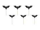 Die 6 Fledermaus Picker Black-Bat sind ein Set von dekorativen, kleinen Fledermäusen, die ideal für Halloween oder andere thematische Anlässe geeignet sind. Drei 15cm lange Picker sind mit einer Fledermausfigur von 9,5 x 4,5cm ausgestattet. Die anderen 3 Picker sind 9cm lang und die passenden Fledermäuse messen 8 x 3,5cm. Ein toller schwarzer Hingucker bei jeder Halloween oder Gothic-Feier.