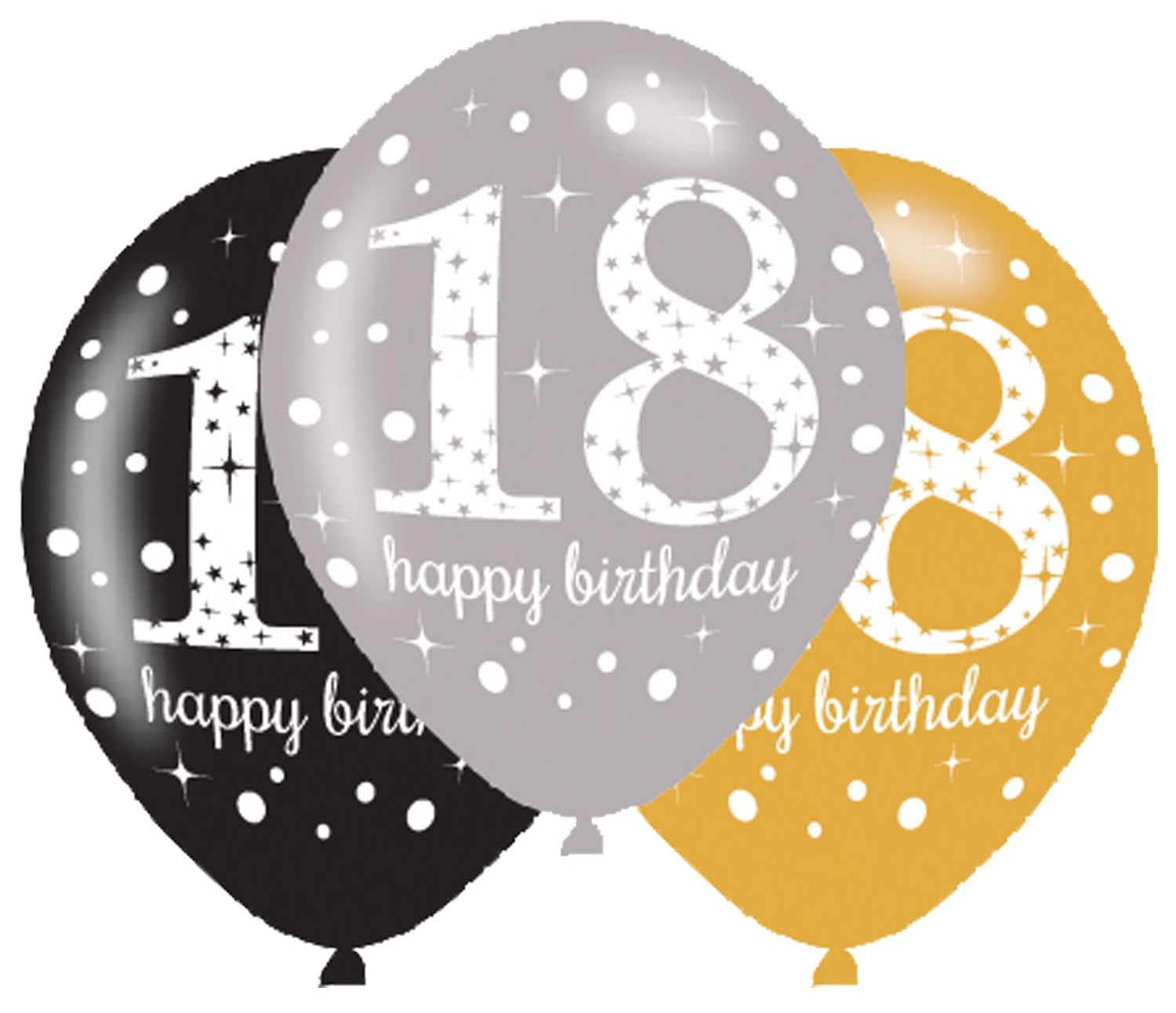 Die Golden 18th Birthday Ballons sind ein absolutes Must-Have für den 18. Geburtstag. Im Set erhältst du 6 Stück mit einem Durchmesser von 27,5cm in 3 verschiedenen Farben und mit einem tollen Konfetti Motiv.
