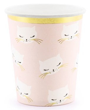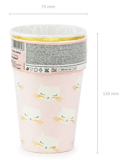 Schnurrrrr! Die Katze Kiki Pappbecher sind ein Must-Have für jeden Liebhaber der süßen Vierbeiner mit Schnurrhaaren. Im Set erhältst du 6 Becher à 200ml, in einem süßen rosa Farbton und mit tollen Katze Kiki Motiven verziert. Der Goldrand sowie die Schnurrhaare sind mit hübscher Goldfolie gestaltet.