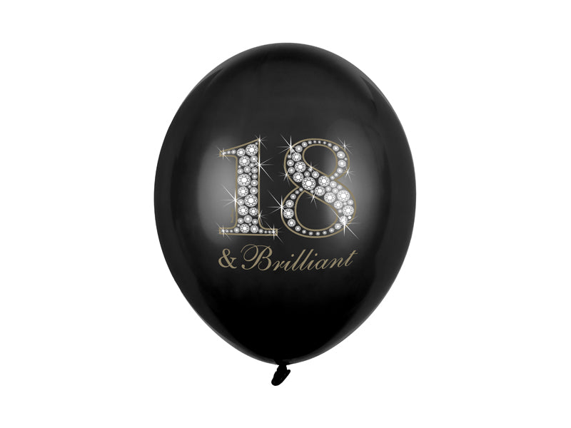 6 schwarze Ballons mit glamurösen Aufdruck verraten jedem, wer gerade Geburtstag hat und endlich volljährig geworden ist. Die Aufschrift "& Brilliant" überzeugt auch den letzten Zweifler, dass hier ein toller Mensch erwachsen wird.