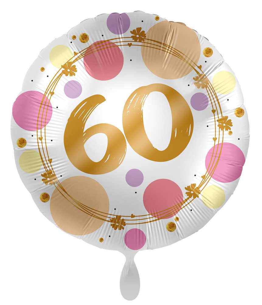 Dieser schöne 60. Geburtstag Ballon Happy Dots ist 45cm groß und mit Happy Dots Aufdruck ideal für den 60. Geburtstag geeignet.