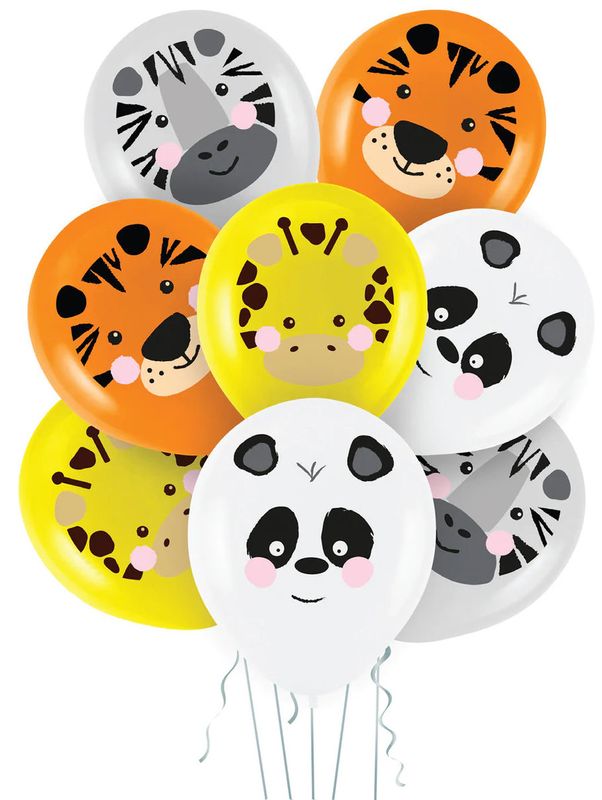 8 bunt bedruckte Luftballons Safari Tiere 30cm