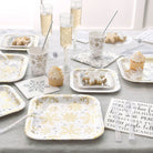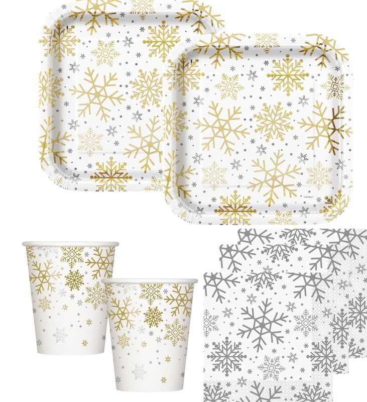 8 glänzende Papp Teller Schneeflocken in Silber und Gold 23x23cm