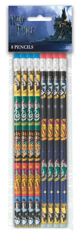 Die 8 Harry Potter Hogwarts Bleistifte sind die idealen Mitgebsel für den Kindergeburtstag oder die nächste Halloweenparty. Abgebildet sind die Wappen der vier verschiedenen Häuser der Hogwartsschule für Hexerei und Zauberei.