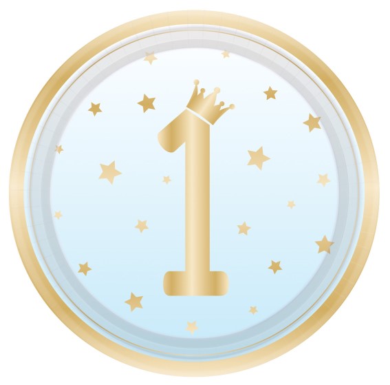 Die 8 Pappteller "Blue 1st Birthday" sind die perfekte Ergänzung für die erste Geburtstagsfeier deines Kleinen. Mit einer Größe von 23cm sind sie groß genug, um leckere Köstlichkeiten zu servieren, und ihre zarte hellblaue Farbe verleiht dem Fest eine bezaubernde Atmosphäre. Jeder Teller ist mit einer gekrönten goldenen "1" und zahlreichen Sternen verziert.