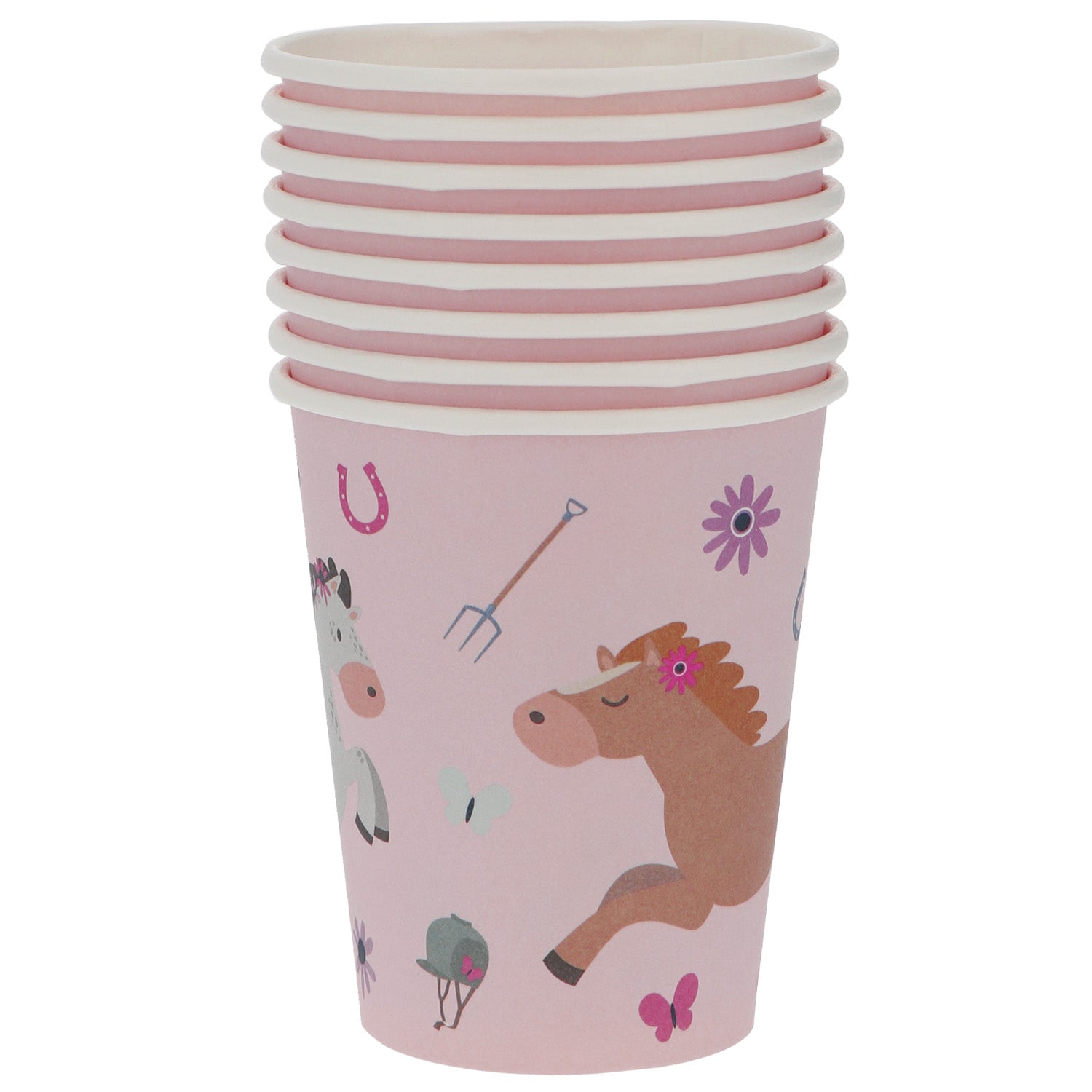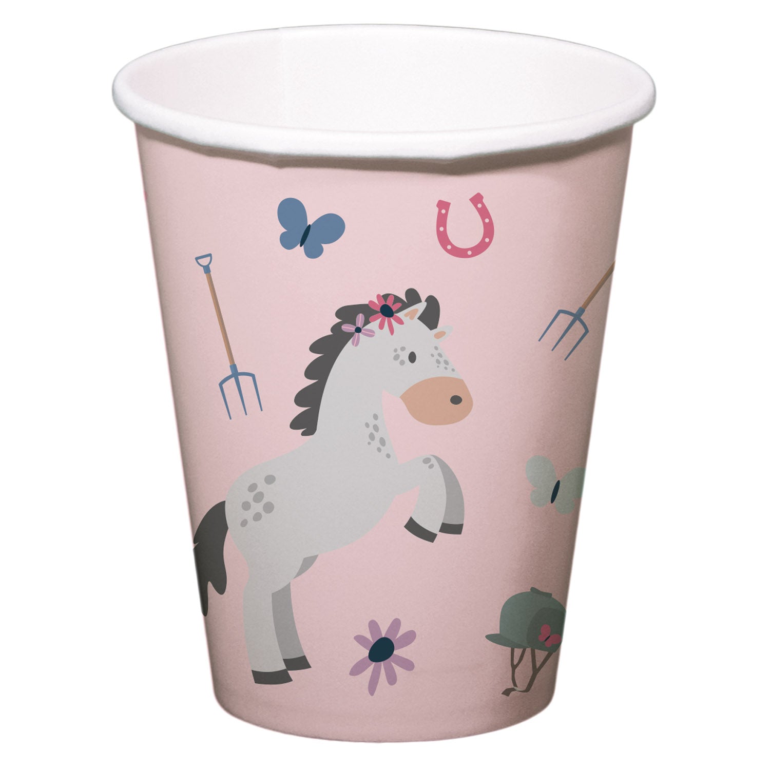 Lass dich von der Magie der Pferde verzaubern mit unserer 'Reiterhof-Freude'-Kollektion! Ob elegante Teller mit anmutigen Pferdemotiven, bunte Becher oder traumhafte Deko - hier dreht sich alles um die majestätischen Vierbeiner. Perfekt für kleine und große Pferdefans, die ihre Liebe zu diesen wunderbaren Tieren auch bei ihrer Feier zeigen möchten! Im Lieferumfang enthalten sind 8 Reiterhof-Freude Becher mit einem Fassungsvermögen von je 250ml.