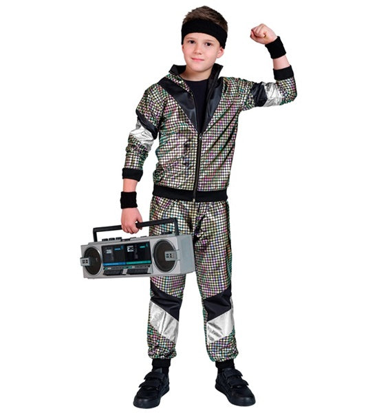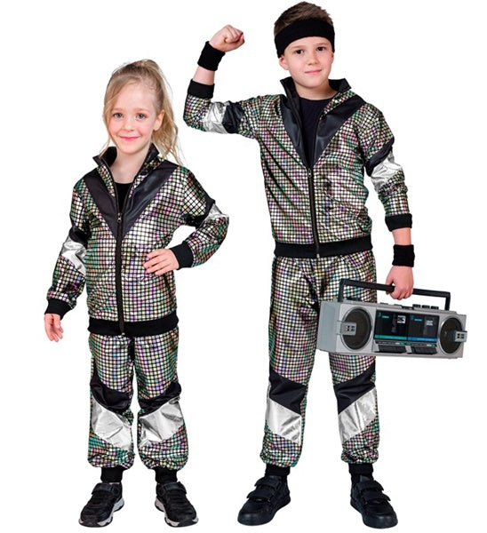 Der holografisch leuchtende 80er Jahre Disco Jogginganzug für Kinder ist ein Highlight auf jeder Faschings- oder Karnevalsparty!