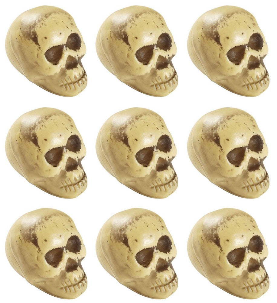 Wenn in der Hölle kein Platz mehr ist, kommen die Toten auf die Erde zurück! Ob an Halloween oder bei einer Grusel-Mottoparty - Totenköpfe als Streudeko auf den Tischen bringen erst so richtig die perfekte Stimmung auf deine Party. Jede der 9 Figuren ist 5cm groß und aus Kunststoff.