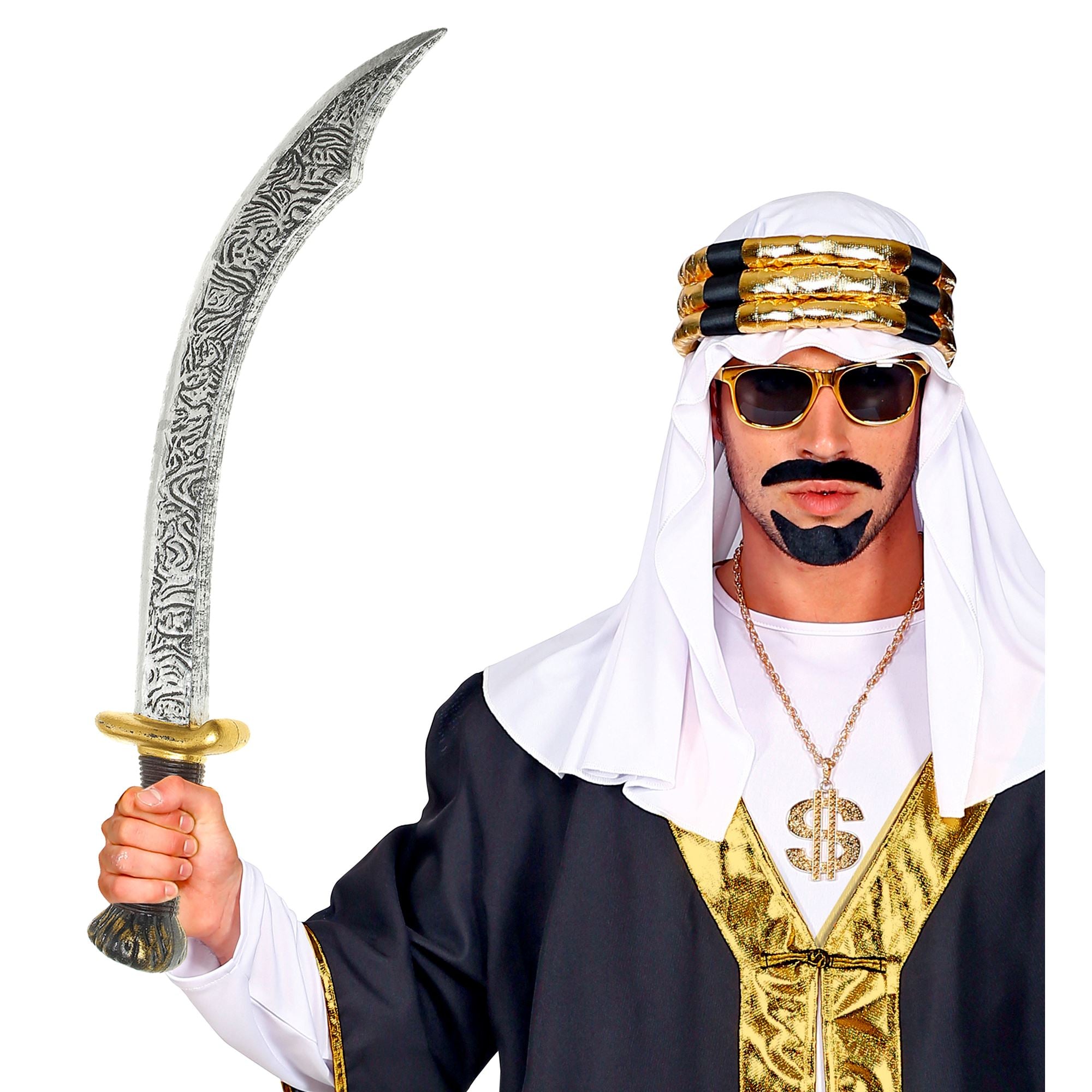 Das arabische Tulwarschwert ist ein unverzichtbares Accessoire für viele orientalische Verkleidungen! Den 72cm lange Säbel brauchst du für deinen Auftritt als Sultan in 1001 Nacht.