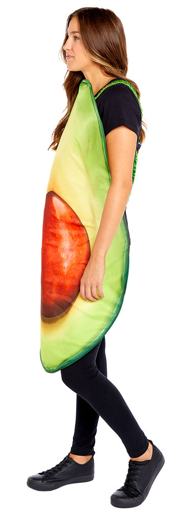 Das witzige Avocado Kostüm für Erwachsene besteht aus einem Überwurf mit fotorealistischem Aufdruck. Ideal für Karneval oder Fasching!