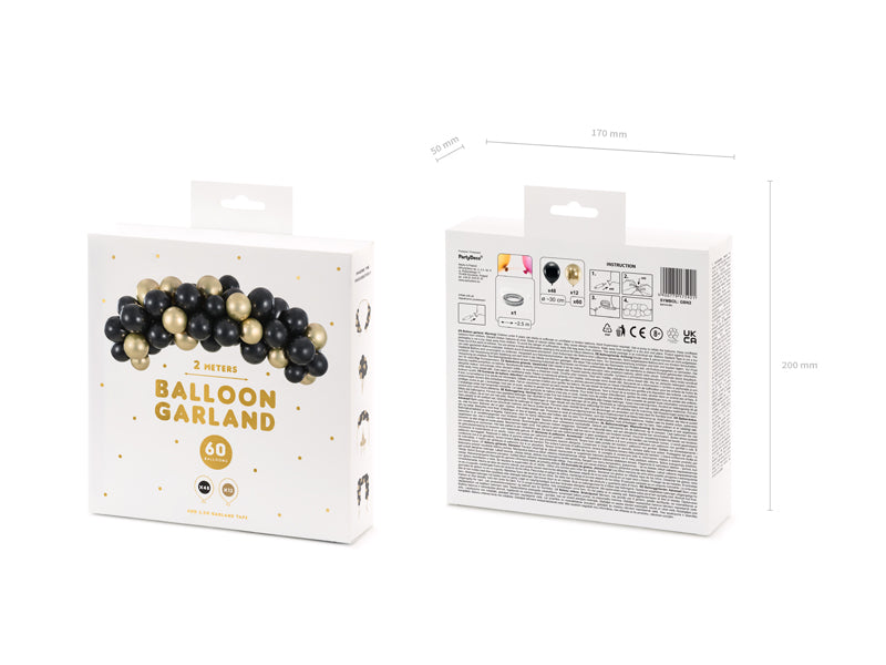Mit dem Ballongirlanden Set Hollywood nimmt der Raum, den du damit schmückst, sofort eine strahlende Wirkung an. Elegantes Schwarz & Gold wechseln sich innerhalb der Girlande ab und verleihen jedem Event das gewisse Etwas. Das Set kommt mit 60 Latexballons zu dir nach Hause und ist garantiert der Hingucker jeder Party! Nicht zu vergessen: 2,5m Ballongirlandenband wird mitgeliefert!