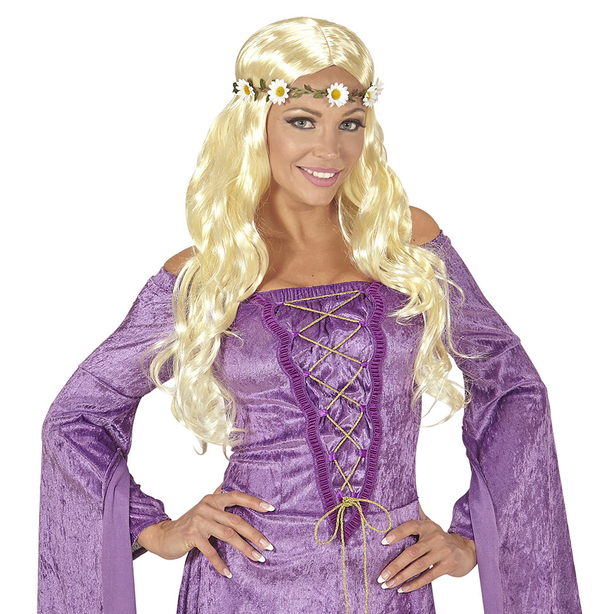 Um zur schönsten aller Hippies zu werden, brauchst du die blumige Hippie-Perücke in Blond. Mit dieser Perücke verwandelst du dich blitzschnell in eine wunderschöne Blondine und kannst so dein Hippie Kostüm vervollständigen. Doch sie eignet sich nicht nur für Blumenkinder! Auch andere Kostüme, wie Prinzessin oder mittelalterliches Burgfräulein, werden mit der Perücke abgerundet. Auch auf dem nächsten Musikfestival könnte sie zum Einsatz kommen!