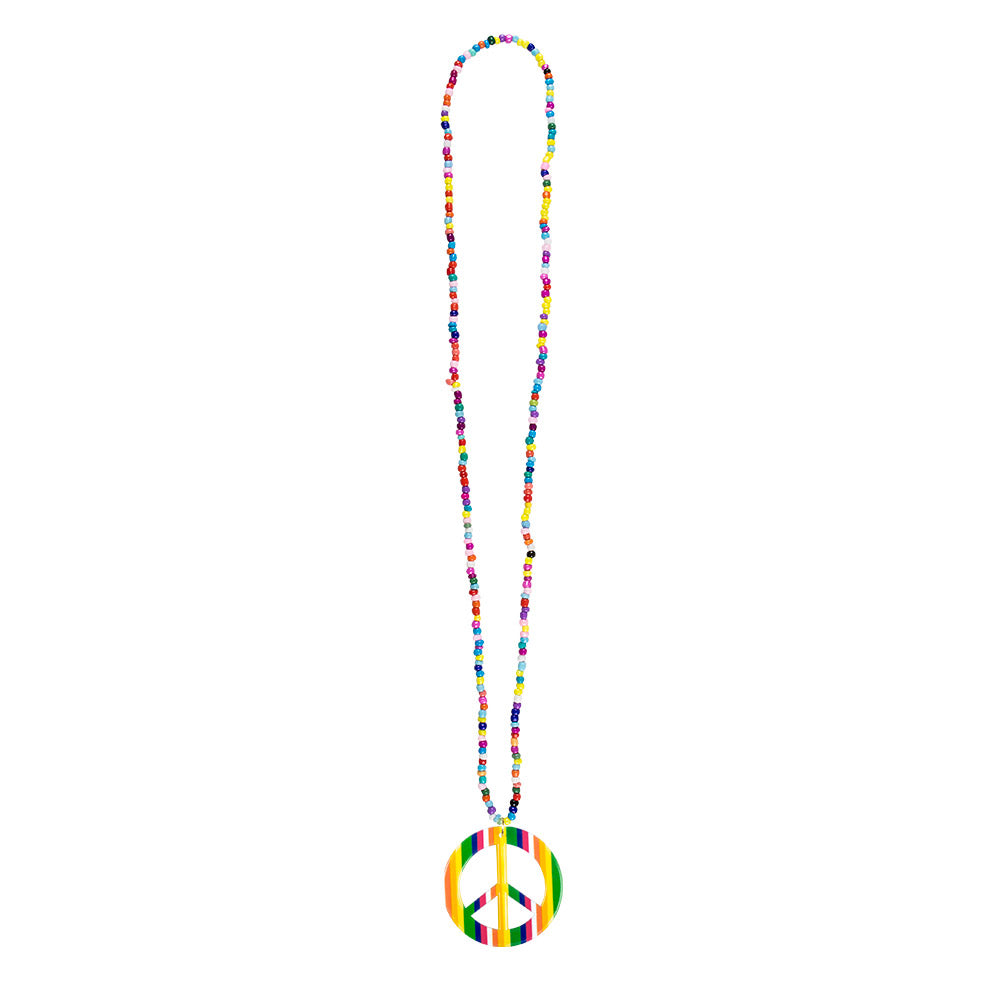 Die bunte Hippie Peace Kette ist ein unverzichtbares Accessoire für so ziemlich jede 70er Jahre Mottoparty! Die Halskette, gestaltet in den lebhaften Farben wie Grün, Gelb und Pink, besteht aus kleinen, aufeinandergereihten Perlen. Ein auffälliges Peacezeichen dient als Anhänger und vervollständigt deinen Retro-Look.