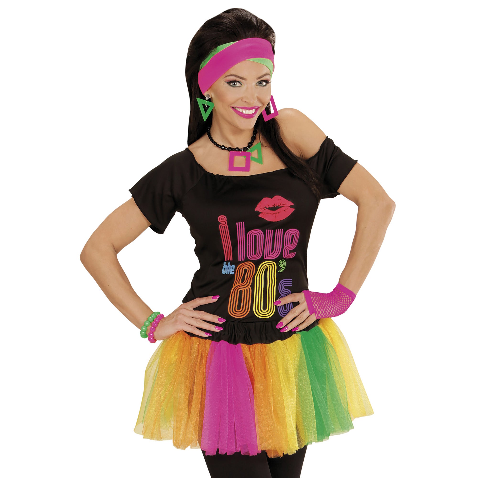 Ein Buntes Neon Tutu passt definitiv zu jeder 80er-Jahre- bzw. Disco-Party und lässt sich zu vielen verschiedenen Kostümen kombinieren! Es besteht aus einem schwarzen Gummibund, an dem pinker, gelber, orangener und grüner neon Tüllstoff angebracht ist. Egal zu welchem Kostüm dieses Tütü kombiniert wird - man wird in jedem Fall zum Hingucker auf der nächsten Party!