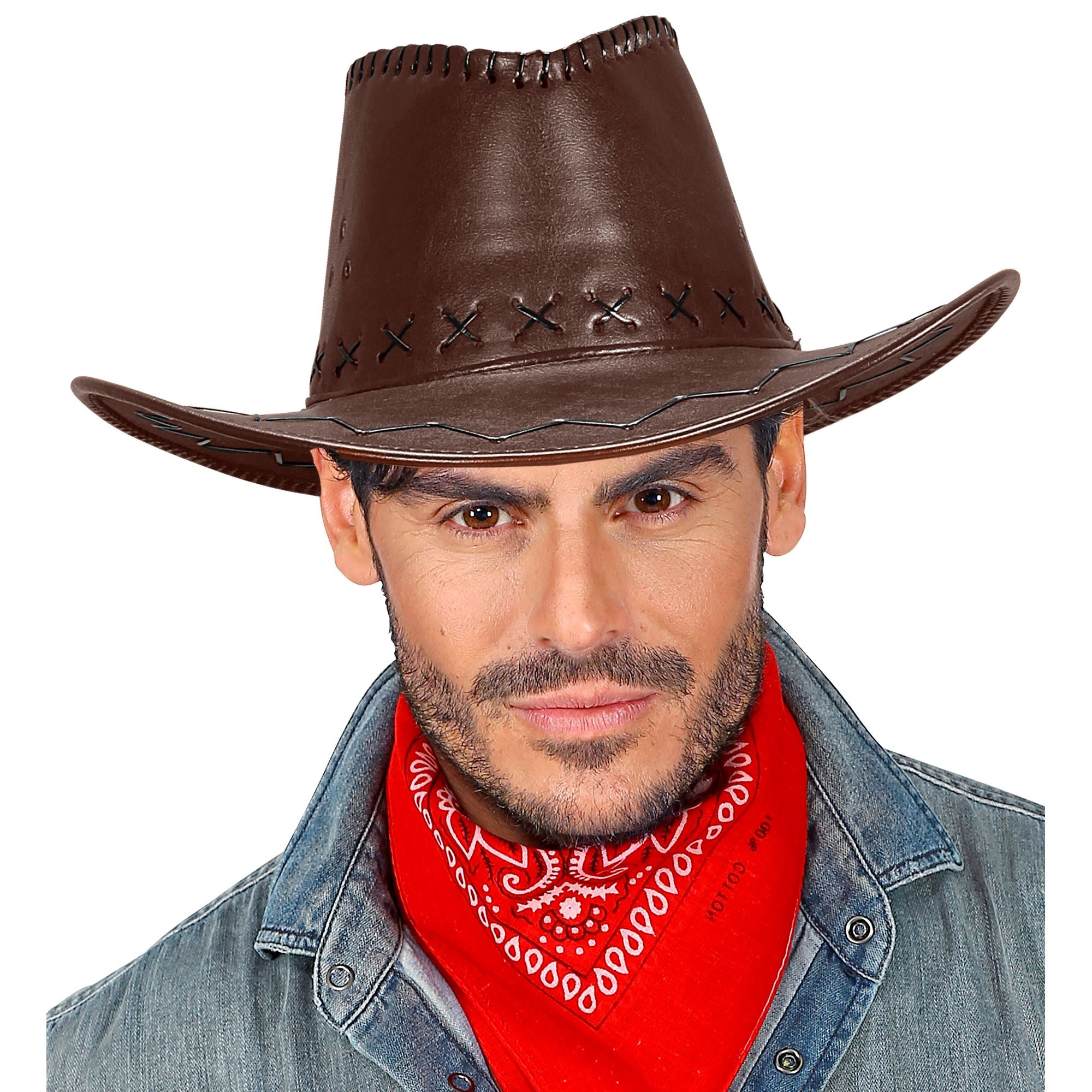 Der schöne Cowboyhut Braun mit Nähten in effektvoller Lederoptik ist perfekt für eine Verkleidung als Cowboy, Sheriff, Ranger oder für andere Verkleidungen im Western Stil. Der Kopfumfang des Westernhelds sollte zwischen 56 - 59cm liegen.