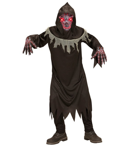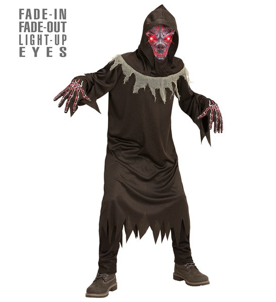 Schaurig, dämonisch, gut! Das Dämonisches Gruselgeist Kostüm für Kinder ist perfekt für alle die an Halloween so richtig gruselig wirken wollen. Im Set enthalten sind sowohl die gruselige Vollkopfmaske, die passenden Handschuhe und der schwarze Überwurf mit Kapuze. EIn starkes Kostüm für Halloween!