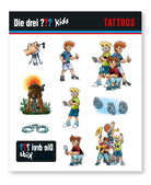 Der Die drei Fragezeichen Kids Tattoo Bogen besteht aus 8 Tattoos und ist ideal als Mitgebsel auf einer Detektiv Party geeignet.