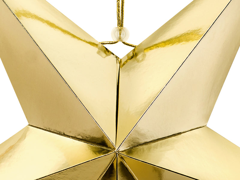 Sag mir wieviel Sternlein stehen... Der Do it yourself Dekostern aus metallisch-goldener Pappe ist eine tolle Möglichkeit dein Zuhause oder den Weihnachtsbaum festlich zu dekorieren. Mit einer Größe von 70cm ist er von überall gut sichtbar und dank des spiegelnden Materials funkelt er wundervoll im Kerzenschein.
