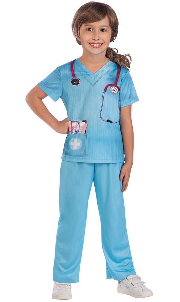 Das Doktor Kostüm für Kinder verwandelt dich in den akademischen Helden der waren Welt. Das Kostüm besteht aus der hellblauen Hose und dem hellblauen Oberteil, welches mit wichtigen Utensilien bedruckt worden ist. Ein Mundschutz darf natürlich auch nicht fehlen und kann optional dazu getragen werden.
