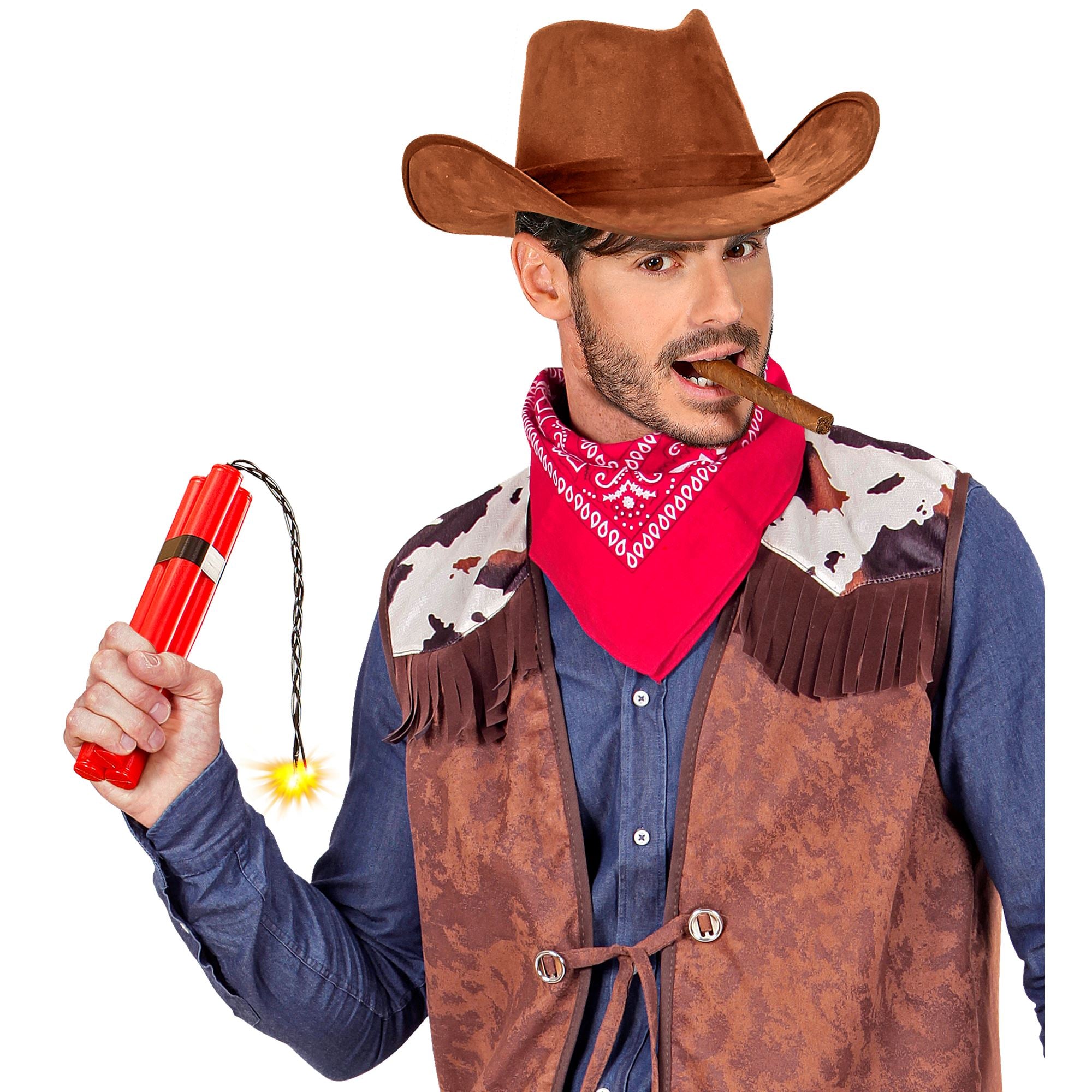 Bumm! Die Dynamit Sprengstoff Stange ist ideal als Ergänzung zu Banditen- oder Gauner Kostümen.