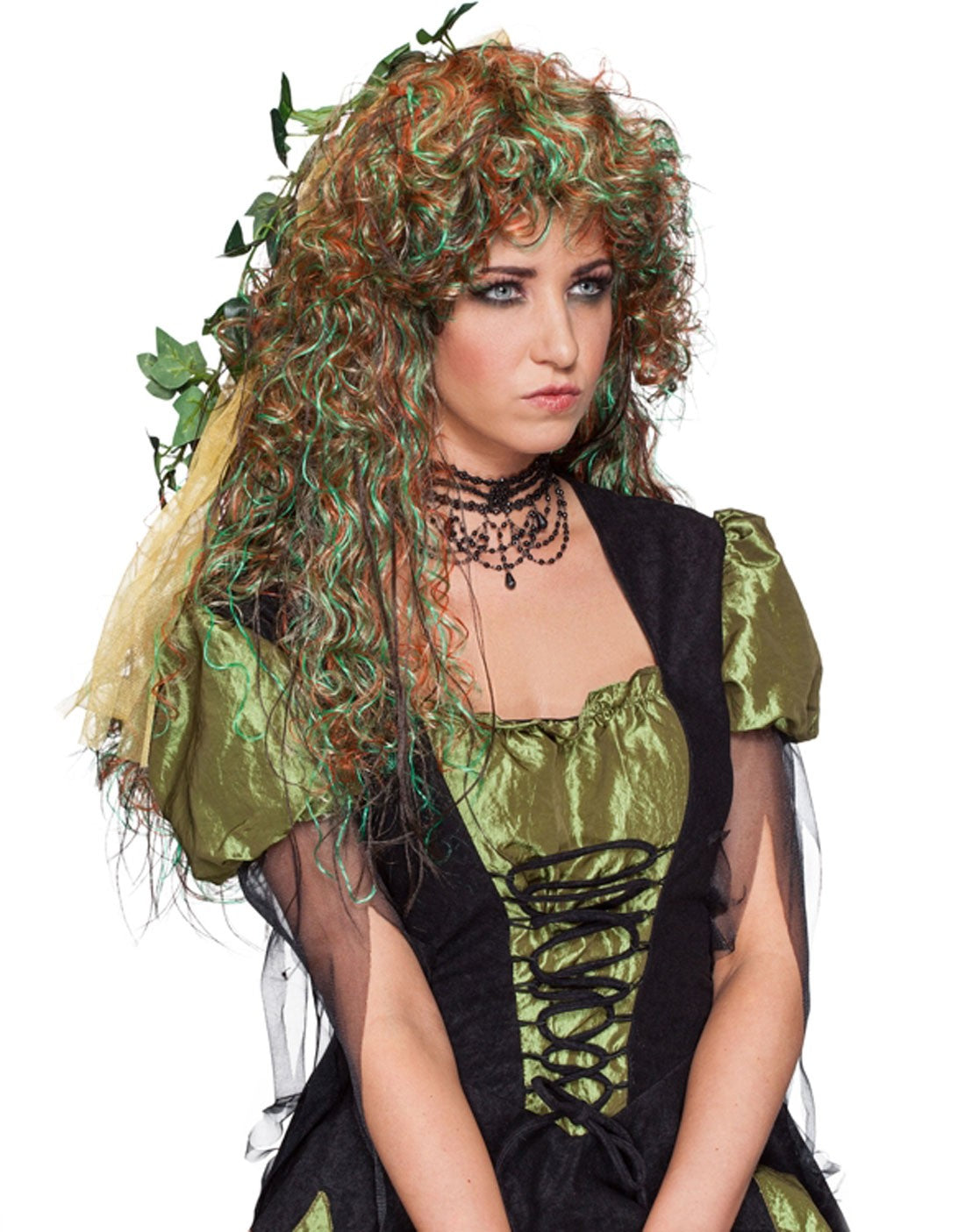 Mit dieser Edera Waldelfen Perücke verwandelt sich jeder im Handumdrehen in eine mystische Waldbewohnerin. Die Perücke besteht aus braunen, grünen, aber auch roten und blonden Strähnen, die zum Teil gelockt, zum Teil glatt sind. Am Hinterkopf befindet sich ein Tüllband mit Efeuzweigen, die den Look abrundet. Ein märchenhaftes Accessoire für Waldfeen, Elfen oder Nixen Kostüme.