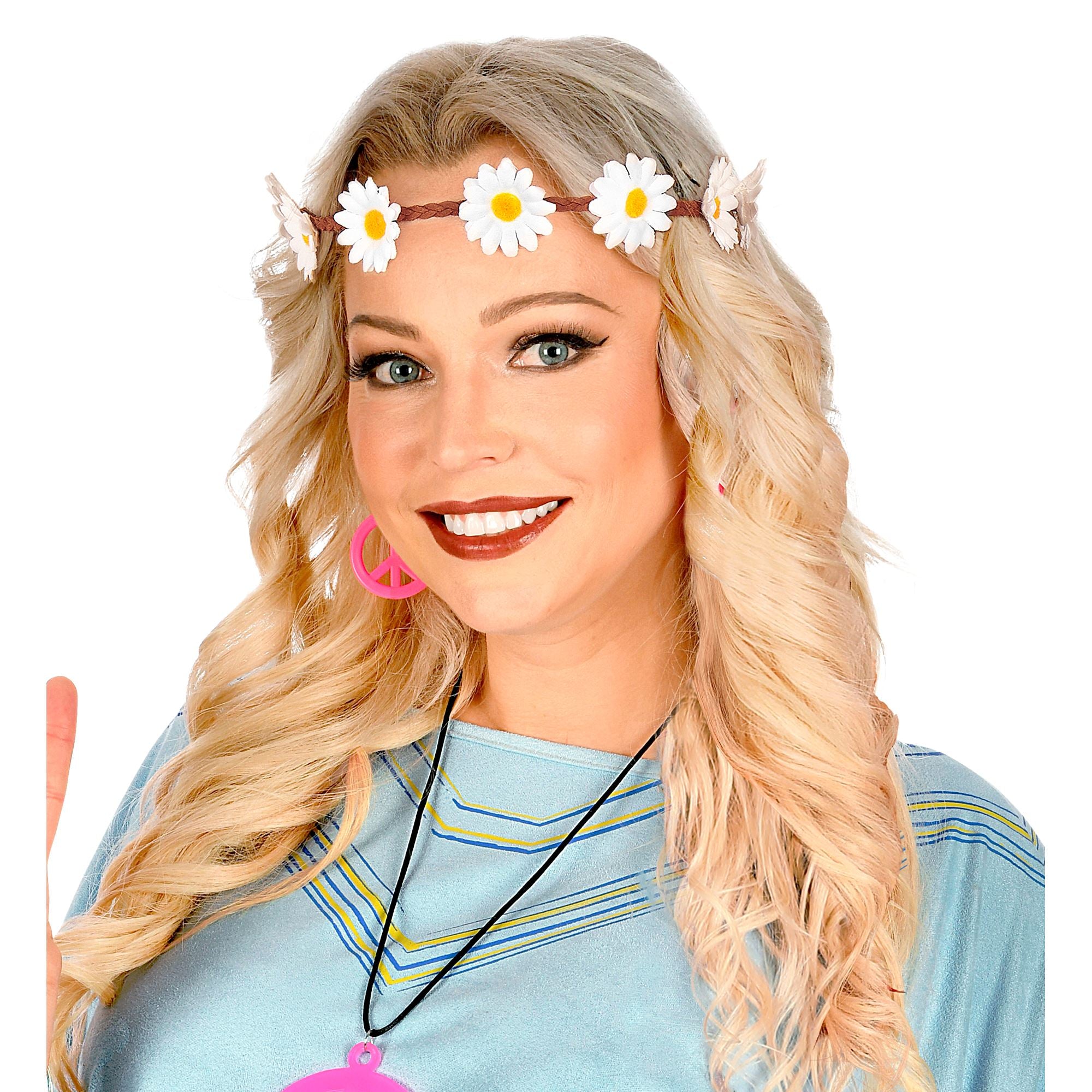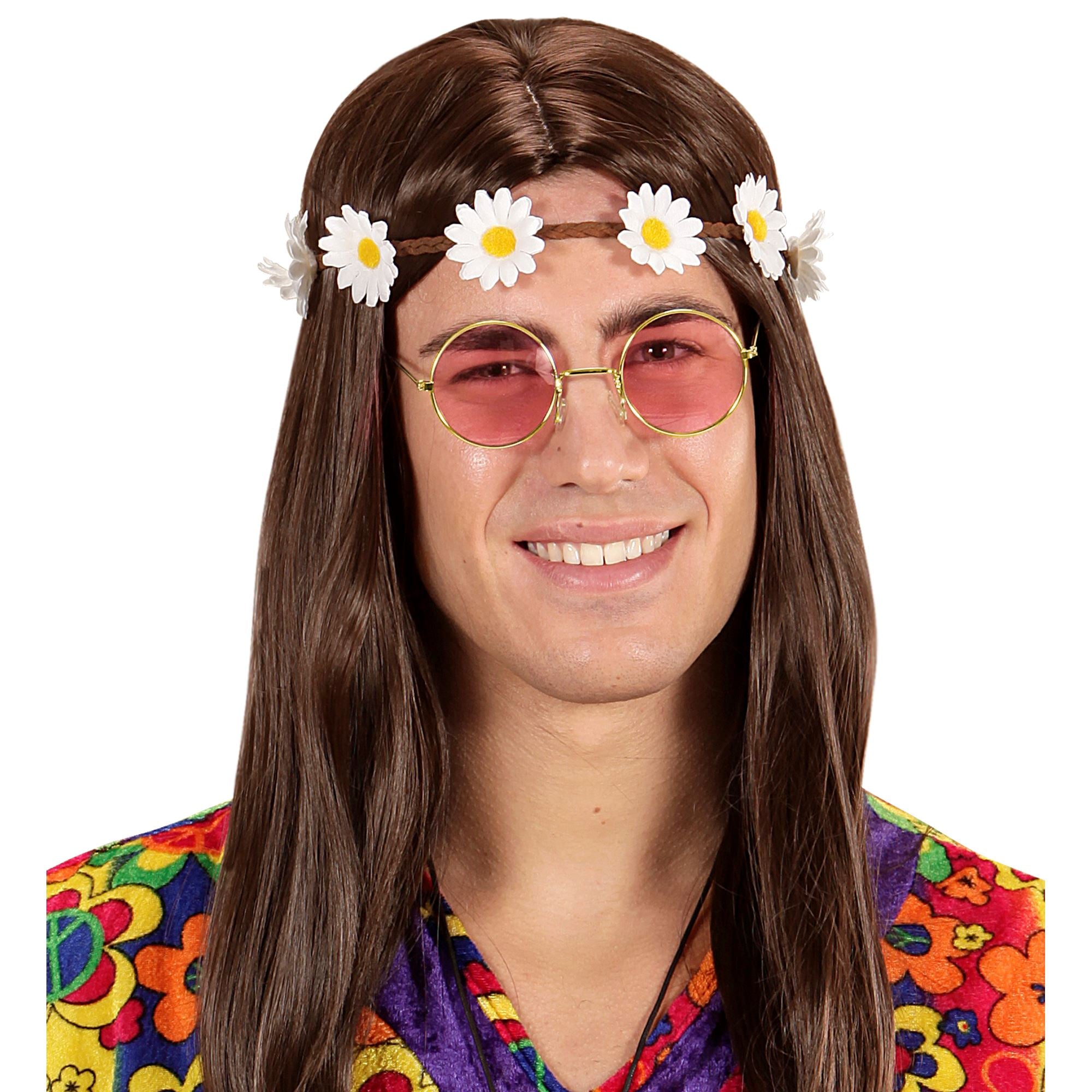 Das Gänseblümchen Haarband ist die perfekte Ergänzung für ein ultimatives Hippie Kostüm. Das Haarband ist mit kleinen Gänseblümchen ausgestattet, die an einem braunen Band befestigt sind. Es passt sich nahezu jedem Hippie Kostüm an.