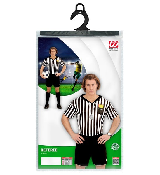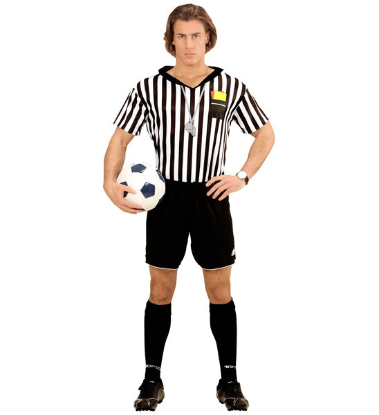 Pfeif die Party an! Das gestreifte Schiedsrichter Herren Shirt besteht aus einem authentischen Trikot mit aufgedruckter Trillerpfeife und Strafkarten. Damit gibst du beim Public Viewing oder auch zu Karneval immer den Ton an!