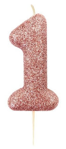 Glitzernde Zahl 1 Tortenkerze roségold 7cm