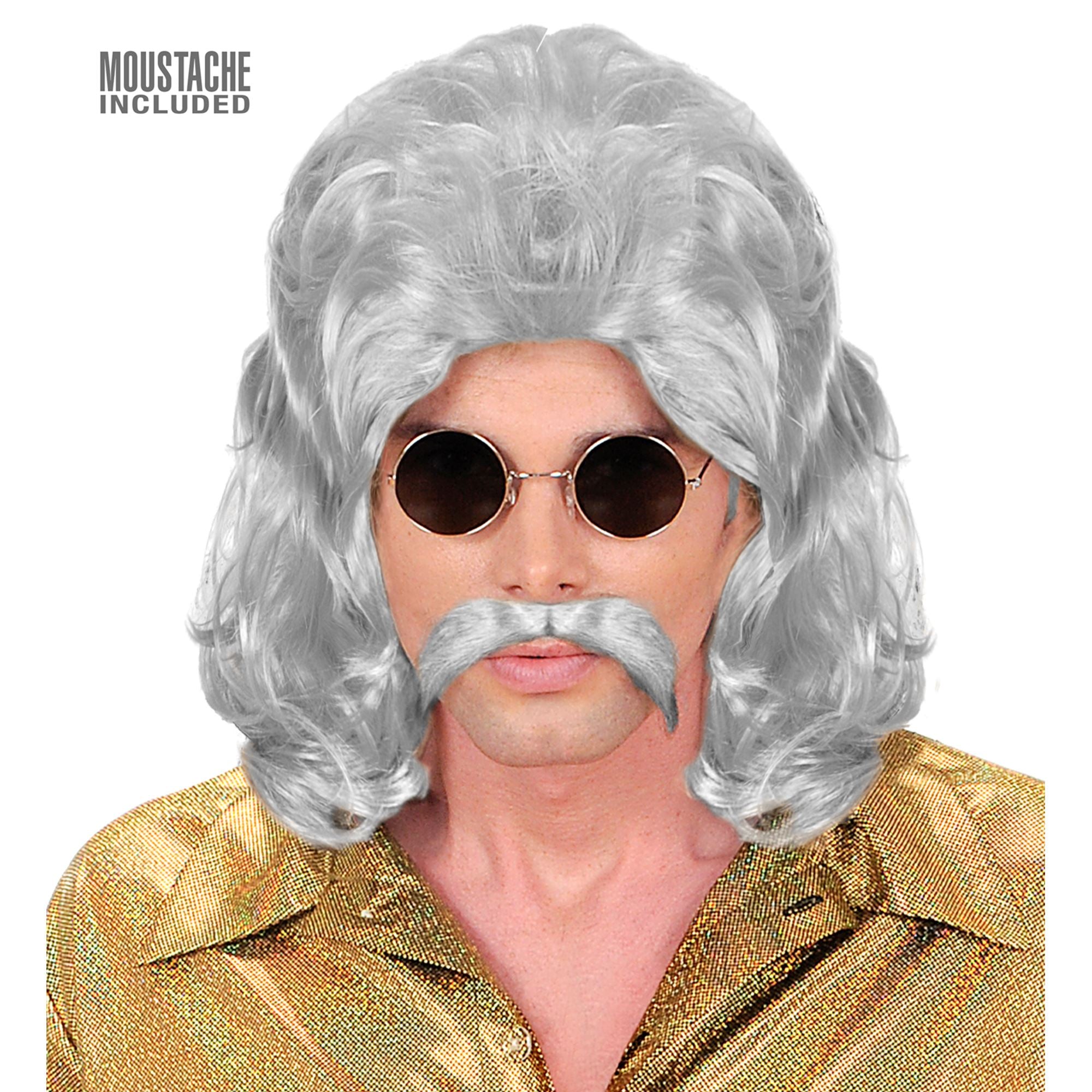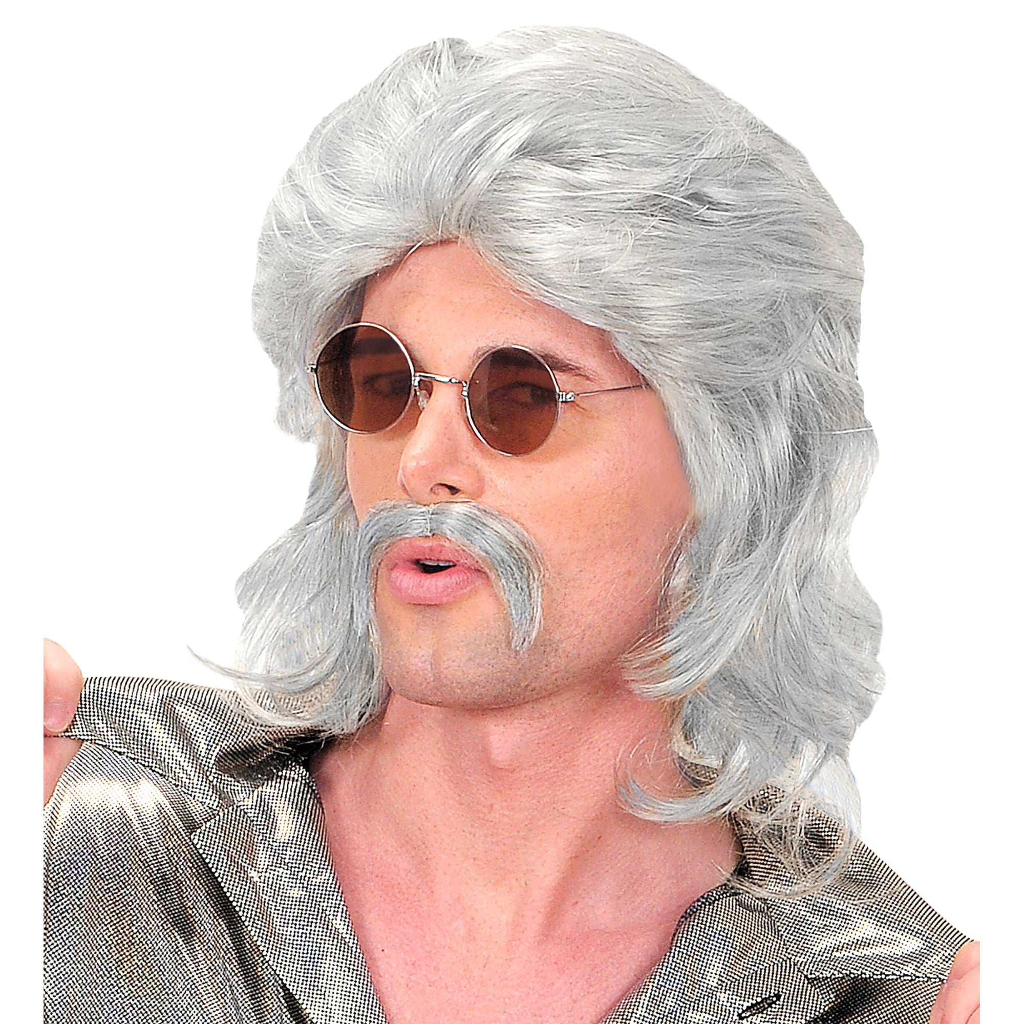 Graue Disko Perücke Mit Schnurrbart Für Herren