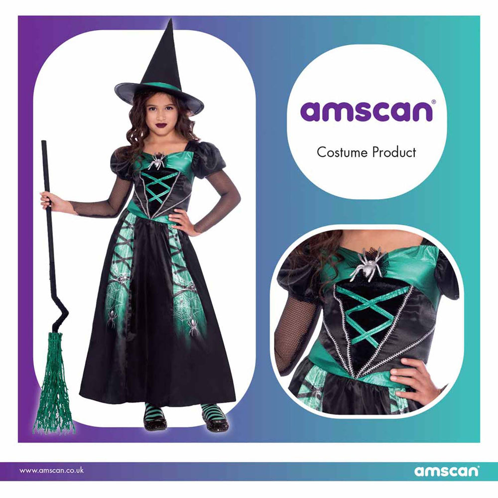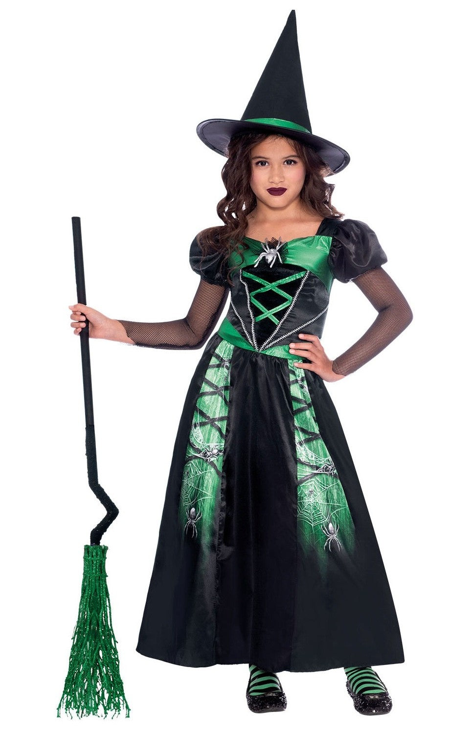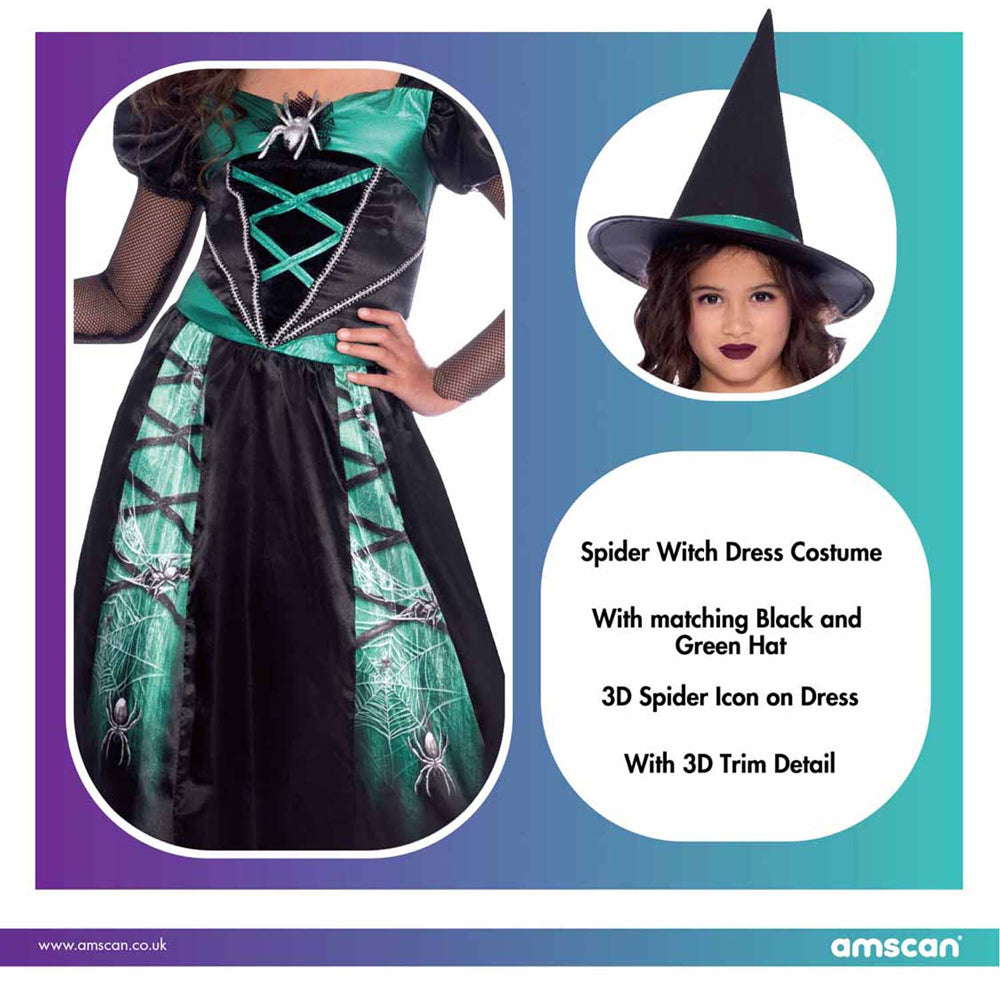 Bezaubernd verhext! Das grüne Spider Witch Mädchenkostüm besteht aus einem detailreichen Kleid mit passendem Hut.