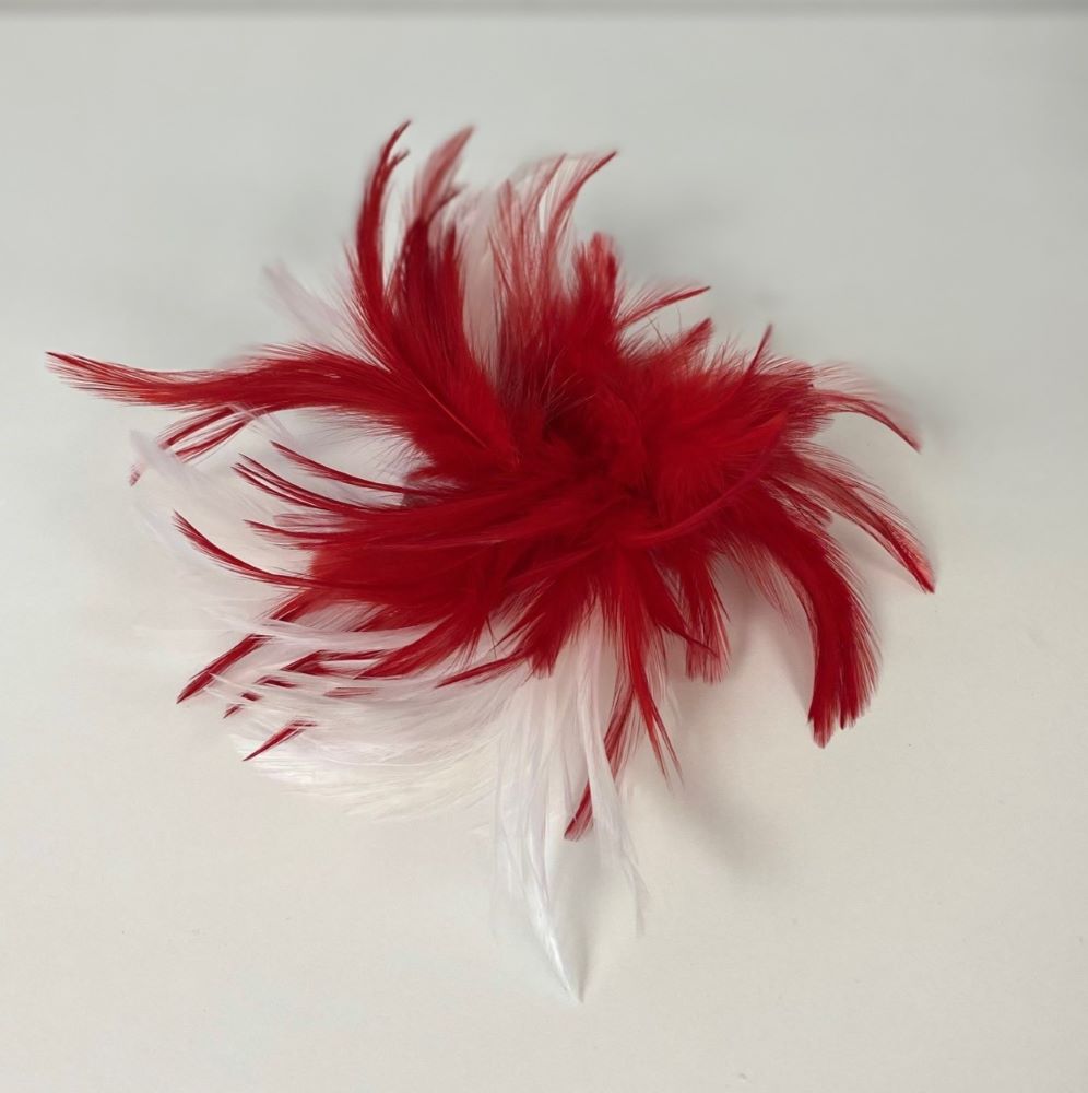 Der Haarclip mit Federn in Rot und Weiß ist ein charmantes und wunderschönes Accessoires, welches die Besonderheit deines Kostüms unterstreicht. Auffallend, elegant, weich und zart zieren sie deine Frisur, den Hut- oder Haarreif oder dein Kostüm.