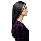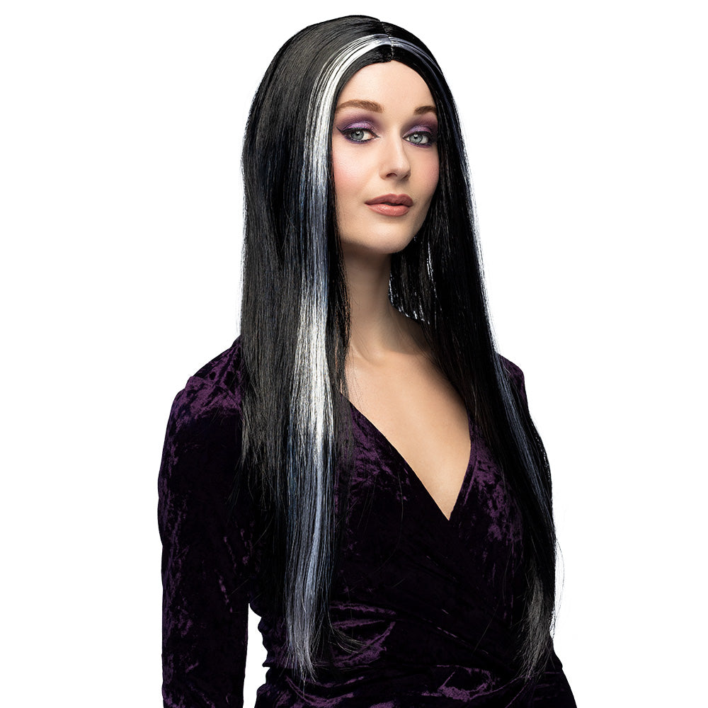 Halloween Perücke Morticia Langhaar Schwarz Weiß