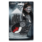 Unsere Halloween Spinne Schmickpalette ist perfekt um eine gruselige Halloween Gesichtsbemalung zu kreiern. Die Schminkpalette ist in Form einer Spinne gestaltet und wird dir samt Auftragepinsel und Schwämmchen geliefert. Enthalten sind die Farben Weiß, Schwarz und Rot. Die Spinne misst etwa 9 x 12cm.