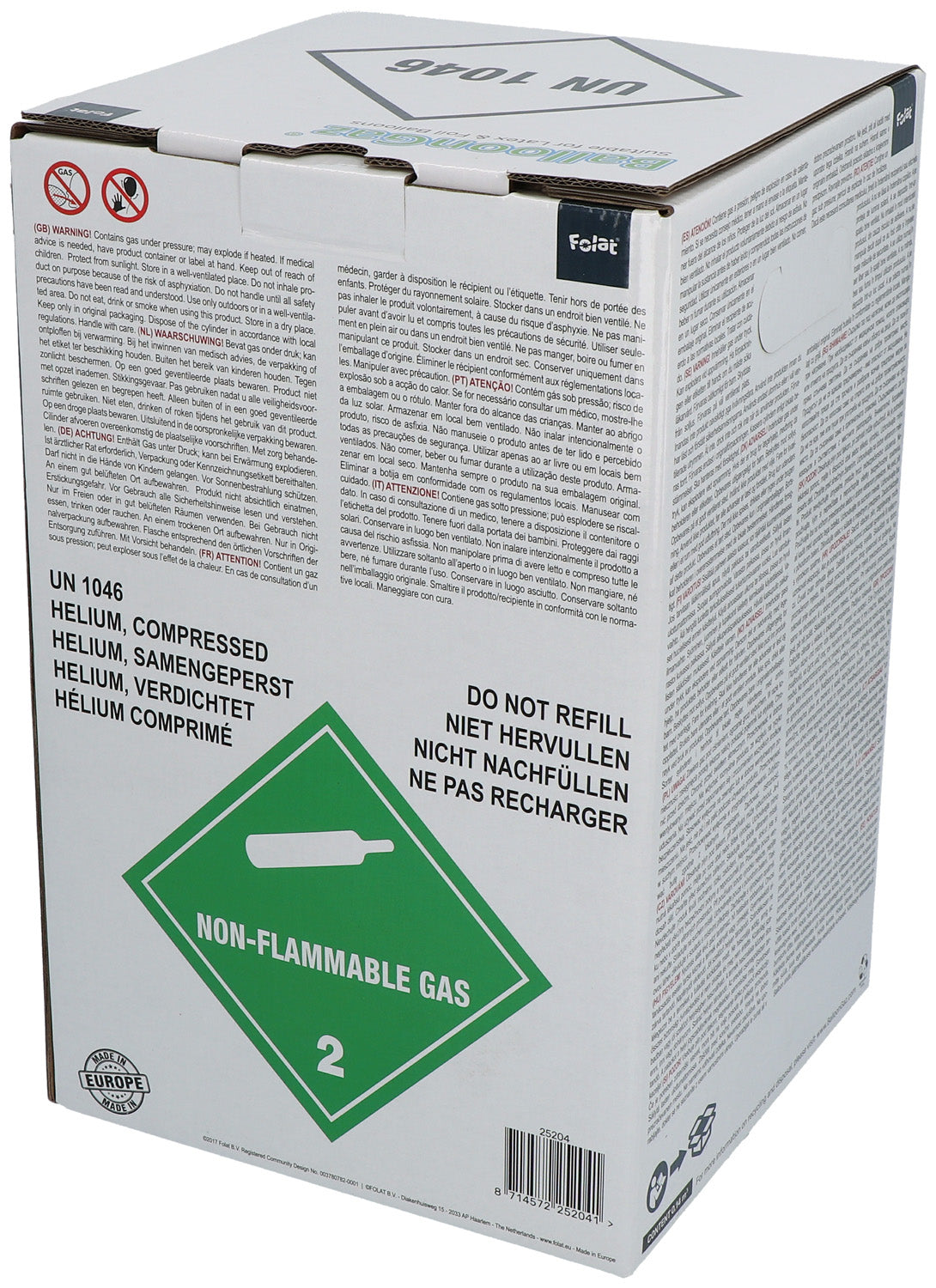 Der Inhalt der Flasche ist komprimiert auf 0,14m³ Helium. Die durchschnittliche Flugdauer eines Latexballons liegt bei etwa 6-7 Stunden bei guter Witterung. Folienballons haben bei mäßigen Temperaturen eine Flugdauer von bis zu einer Woche.