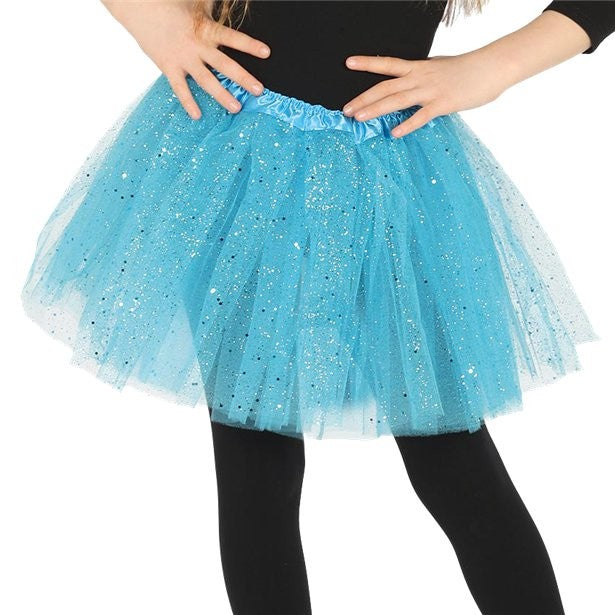 Das Hellblaue Glitzer Tutu für Mädchen hat eine Länge von 30cm und ist mit einem Gummizug versehen. Passend für diverse Kostümierungen.