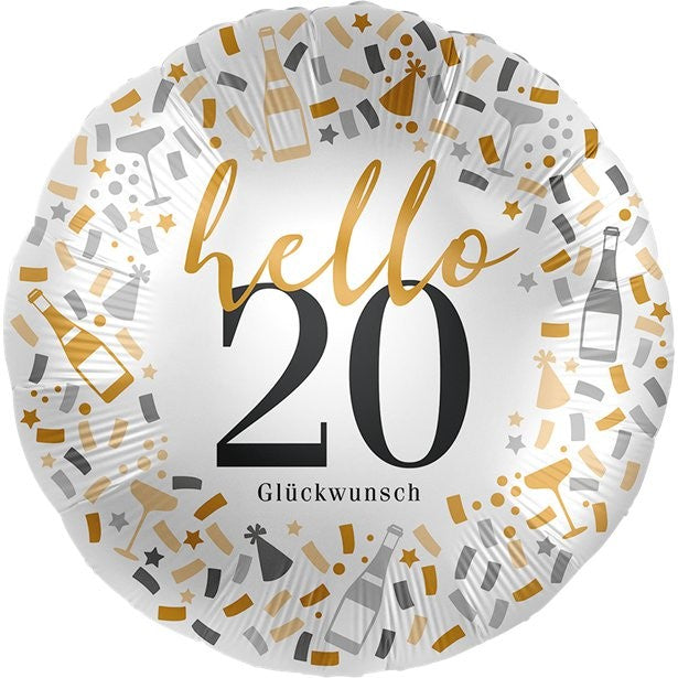 Für eine fröhliche Geburtstagsparty wähle den Hello 20 Glückwunsch Folienballon. Seine 46cm festliche Freude machen deinen 20. Geburtstag zu einem außergewöhnlichen Ereignis.