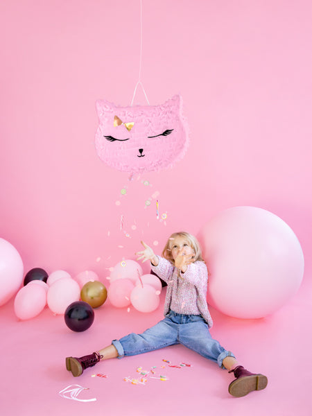 Die Katze Kiki Zieh-Piñata ist nicht nur ein absoluter Hingucker in deinem Zuhause, sondern auch ein absoluter Kracher auf deiner Party. Bei dieser Piñata handelt sich um eine Zieh-Piñata mit einer Größe von 35 x 27 x 9cm. Anders als eine gewöhnliche Piñata muss diese nicht zerschlagen werden; stattdessen wird mit verbundenen Augen an den langen Bändern gezogen, bis die Süßigkeiten herausfallen.