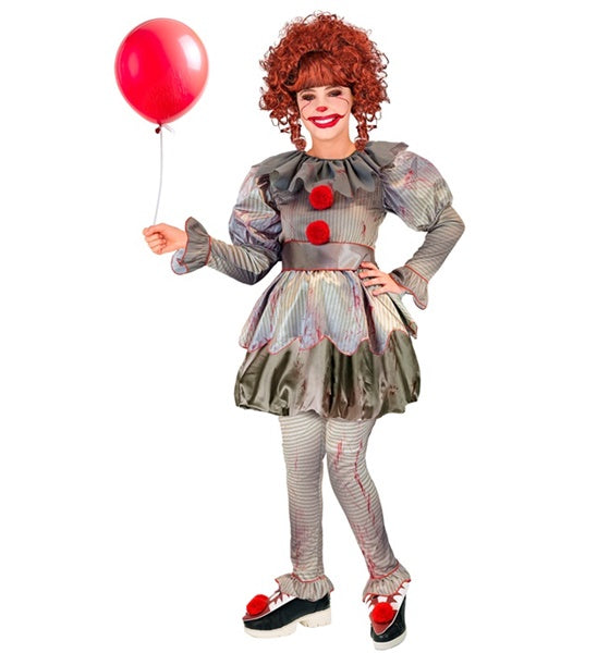 "Killer Clown Kinder Mädchen Kostüm" (Kleid, Leggings, Gürtel, Schuhüberzieher)