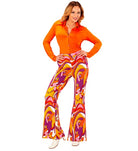 Welcome to the Sixties! Mit dieser knalligen 70er Jahre Damen Schlaghose wirst du zum Hingucker auf der Hippie-Mottoparty, beim Fasching oder beim Schlagermove.