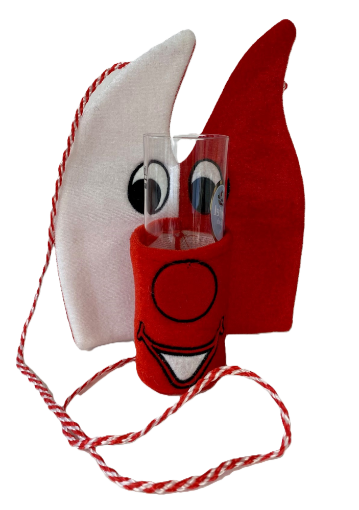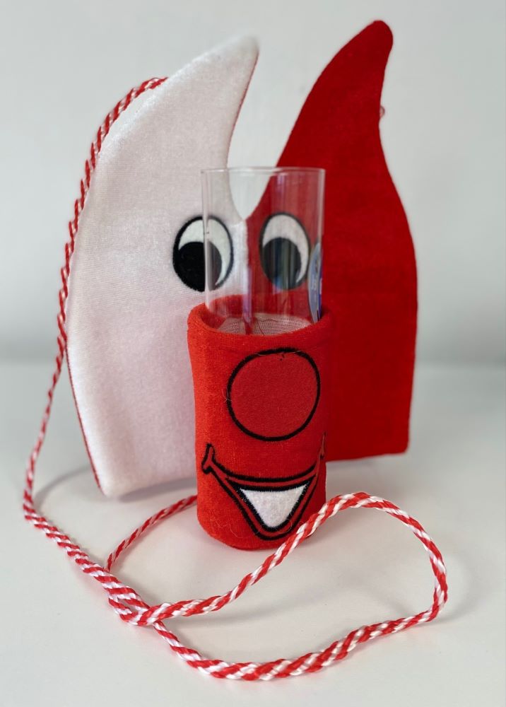 Praktisch und dekorativ zugleich: Der Kölschglashalter 'Kölner Dom' mit integriertem Täschchen - In die Vorrichtung des 22,5cm x 18cm großen und rot-weißen Doms passt perfekt ein Glas kölsch und hält dir die Hände frei zum klatschen. Auf der Rückseite ist zudem eine kleine Tasche mit Reißverschluss eingearbeitet.
