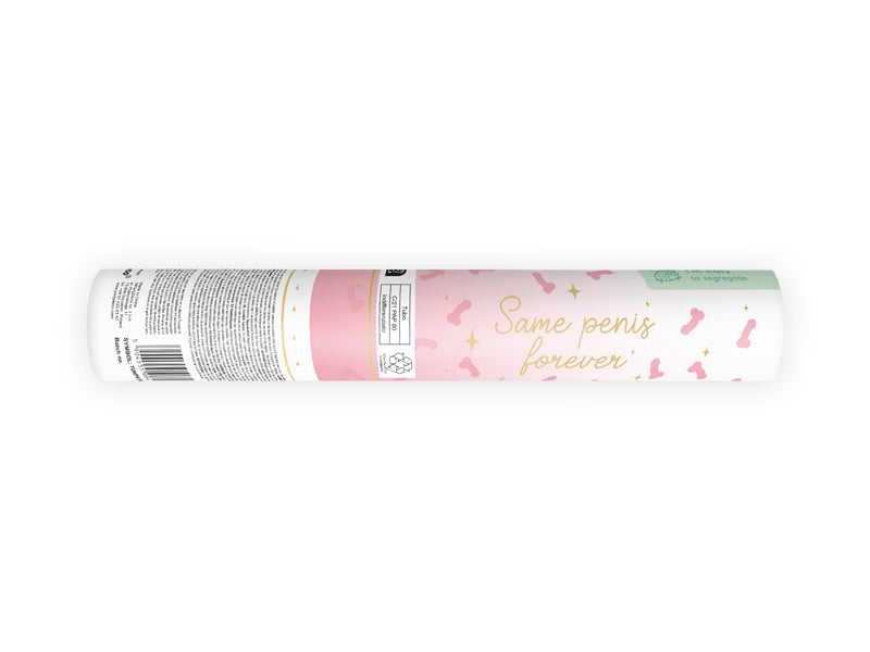 Nie im Leben ist die Konfettikanone "kleiner Peter" nur 20cm groß. Ist sie doch! Und sie ist mit rosafarbenen Penis-Konfetti gefüllt. Perfekt also für euren JGA.