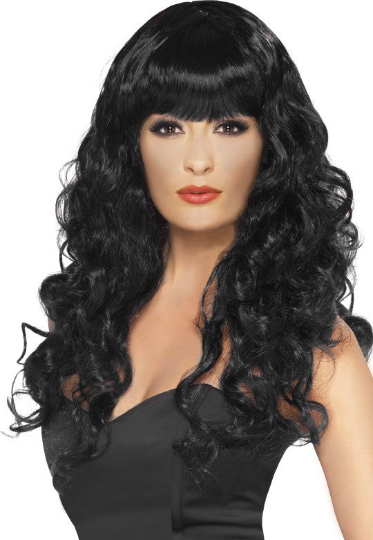Die Lockige Hexenperücke in Schwarz ist das perfekte Accessoire um schaurige Halloween Kostüme, wie das Gespenst oder die Hexe, aufzuwerten. Die wallenden schwarzen Haare präsentieren sich in einer tollen Lockenpracht. Die Haare reichen bis zur Brust, der markante Pony rundet die Frisur frech ab. Eindrucksvoll und sexy kommt die Trägerin dieser Lockigen Hexenperücke in Schwarz daher. Viel Spaß beim Ausprobieren.