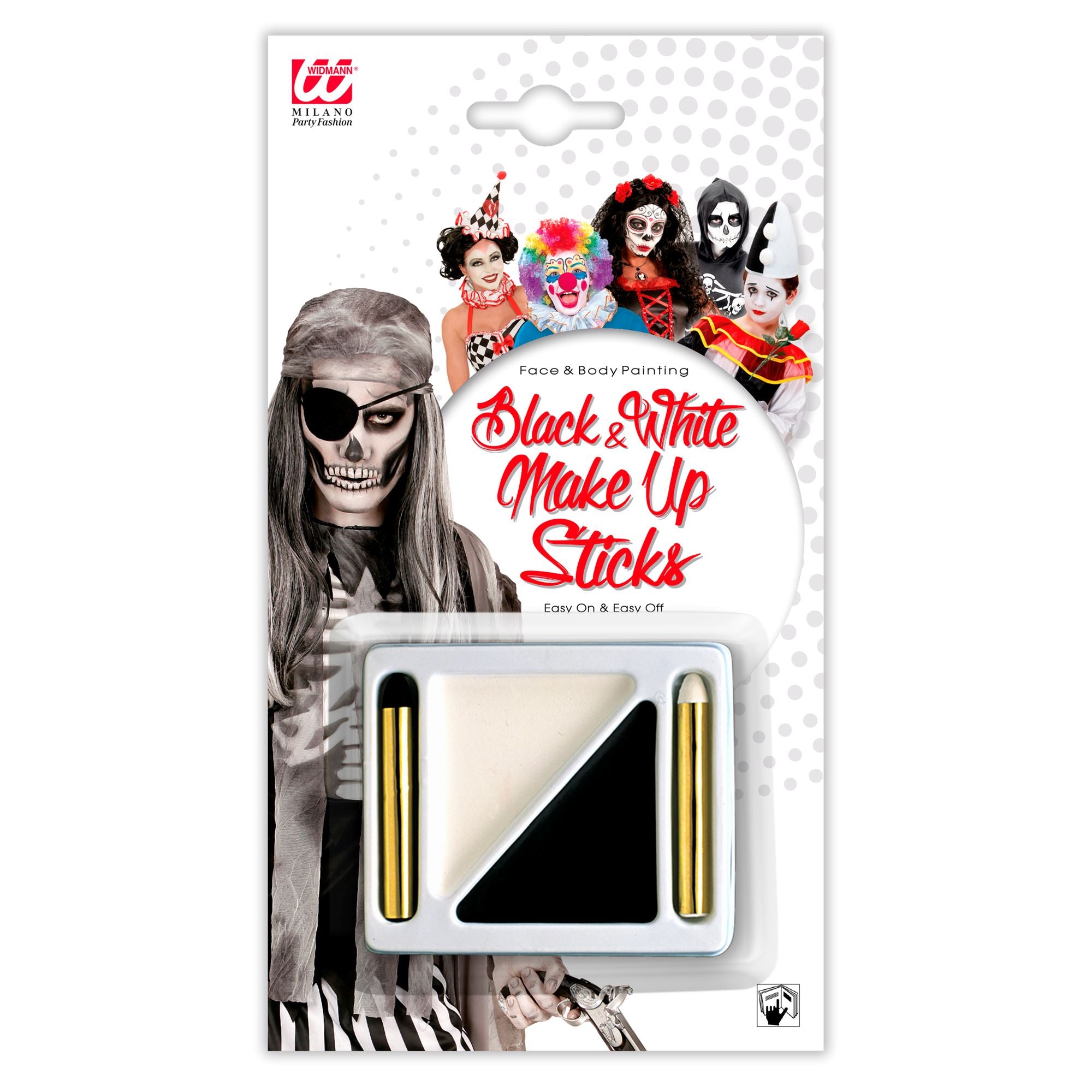 Black & White ist ein Klassiker der Mottopartys! Und natürlich darf dieses Make-Up-Kit Black & White Halloween nicht fehlen. Es enthält eine Palette mit weißer und schwarzer Farbe für großflächigere Partien. Für die Details enthält das Set auch noch je einen schwarzen und weißen Stift.