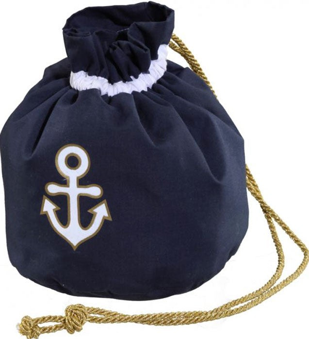 Der Maritime Anker Beutel mit goldenem Zugband ist ein tolles Accessoire für Matrosinnen Kostüme.