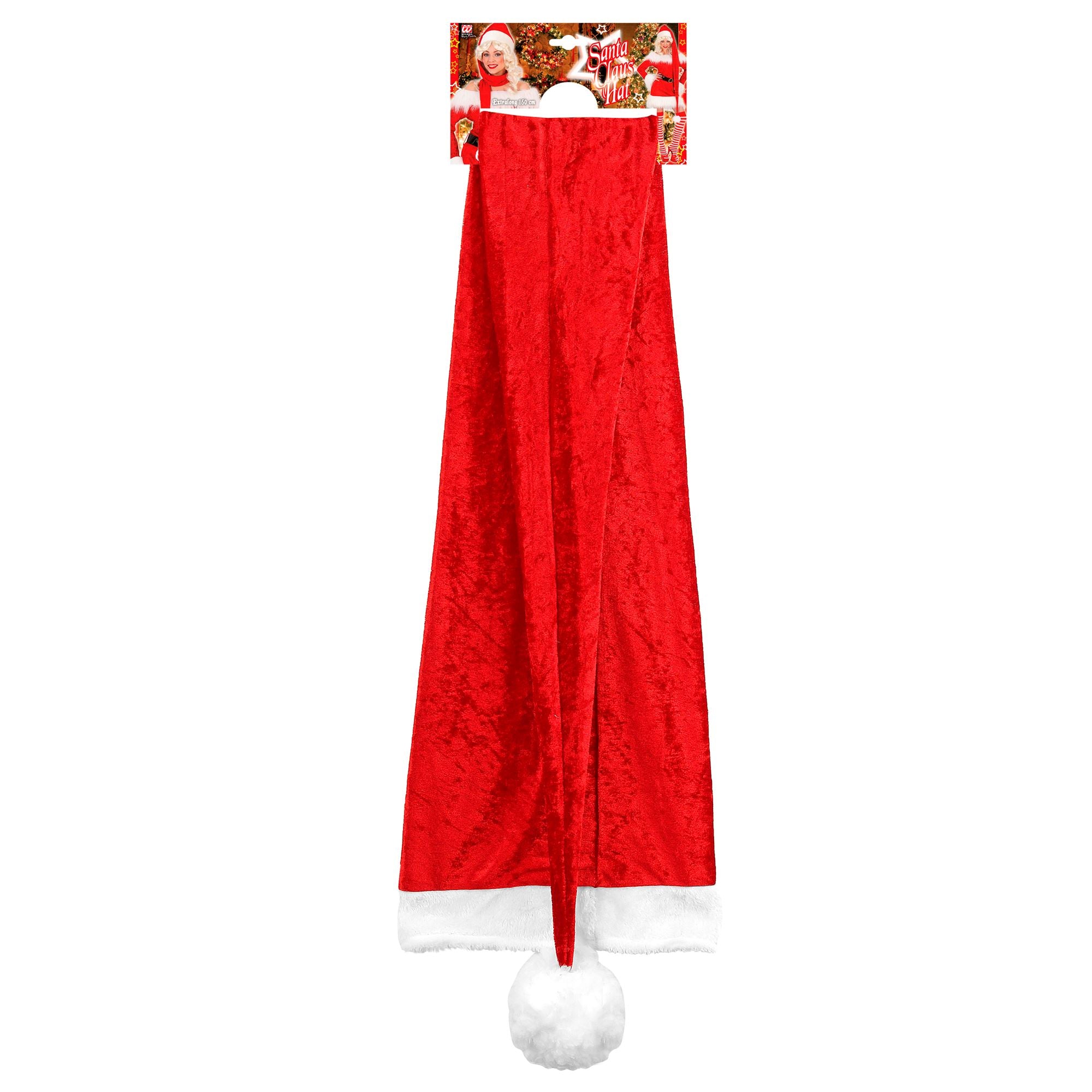 Unsere maxilange Weihnachtsmütze mit Bommel ist aus rotem Pannesamt mit weißem Plüschbesatz und hat eine beeindruckende Länge von 1,5m. Die exklusive Weihnachtsmütze für Erwachsene mit einem Kopfumfang von bis zu 59cm ist ein absoluter Hingucker und du bist damit garantiert der Star auf jeder Weihnachtsfeier. Die Länge der Mütze sorgt für einen festlichen und lustigen Look.