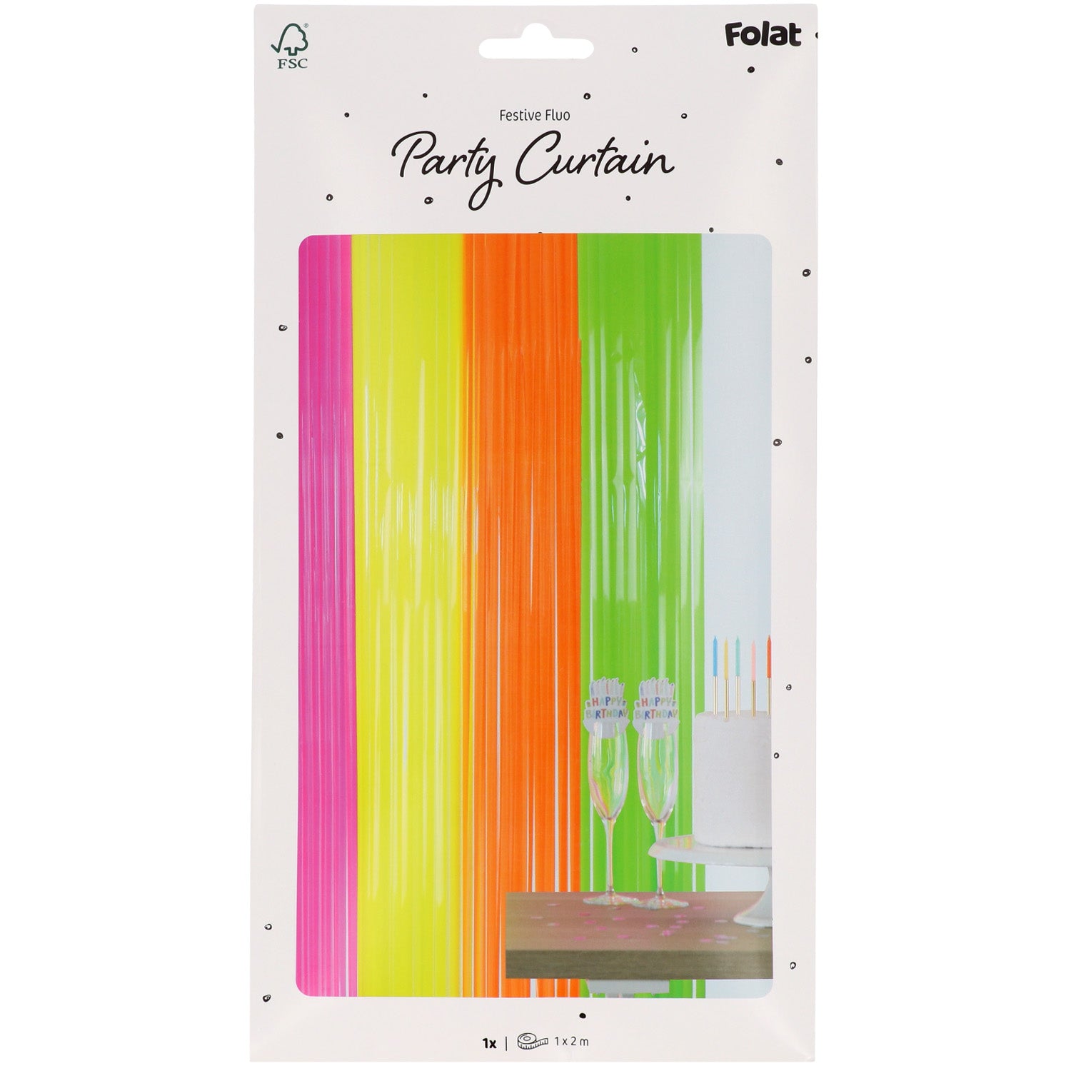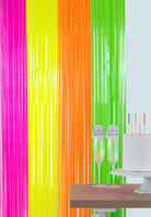 Dieser neonfarbene Türvorhang ist ein absoluter Allrounder: ob für 80er Jahre Partys, Neonpartys oder zu Silvester - er passt überall dazu und sorgt schon beim Eintreten für leuchtende Stimmung. Der bunte Türvorhang mit seinem Maß von 1m x 2m bildet beispielsweise einen hübschen Raumtrenner oder auch einen tollen Metallic-Foto-Hintergrund.