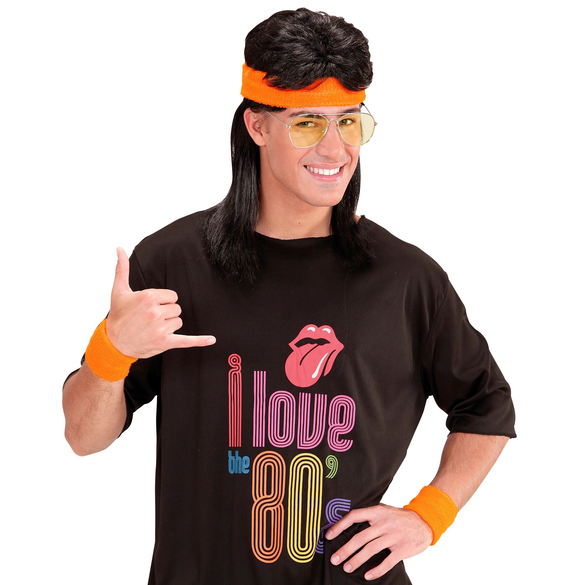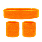 Mit dem neonorangen Set Schweißbänder und Stirnband bist du bestens ausgestattet für die kommende 80er Jahre Party!