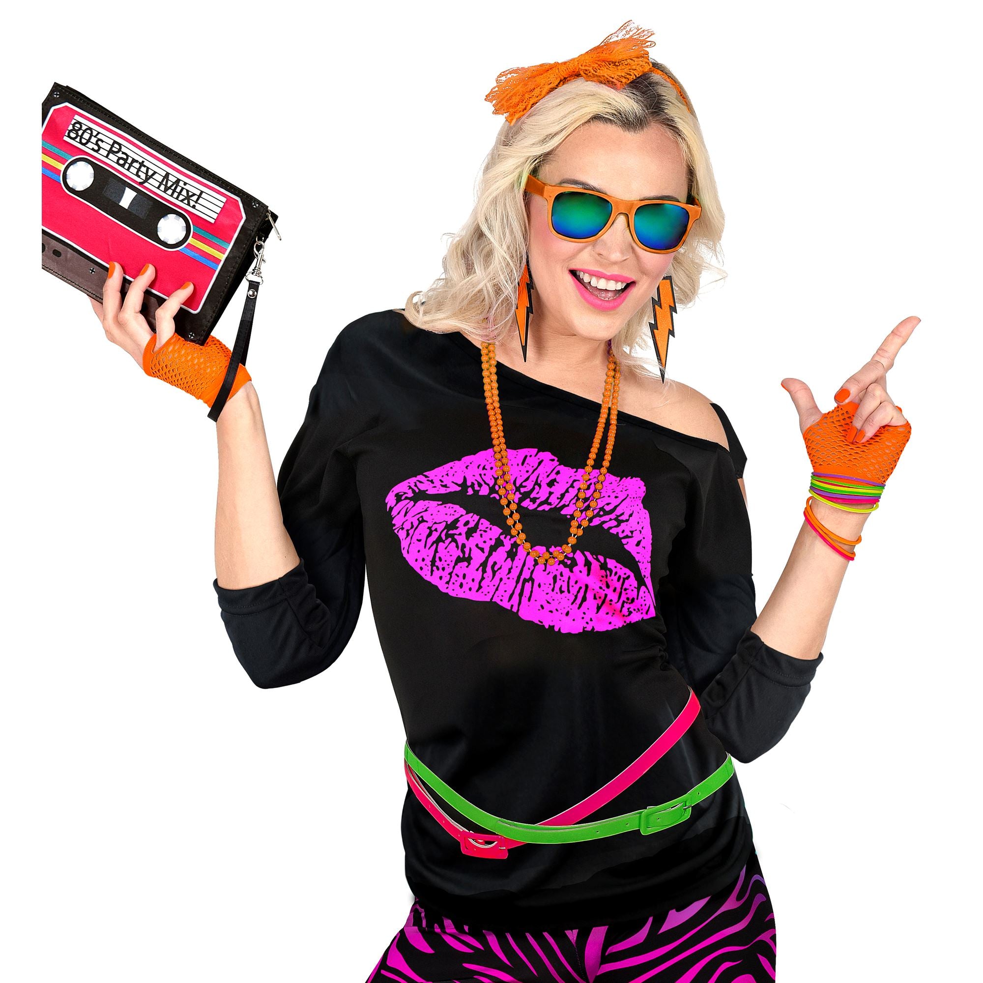 Mit den Netzhandschuhe fingerlos neon-orange kannst du dich auf jeder 80er Jahre Mottoparty sehen lassen!